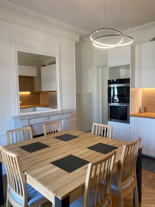 Situé au cœur du quatorzième arrondisement de Paris, cet appartement haussmannien de 130m² a fait l'objet d'une rénovation complète visant à allier le charme de l'ancien au confort moderne.